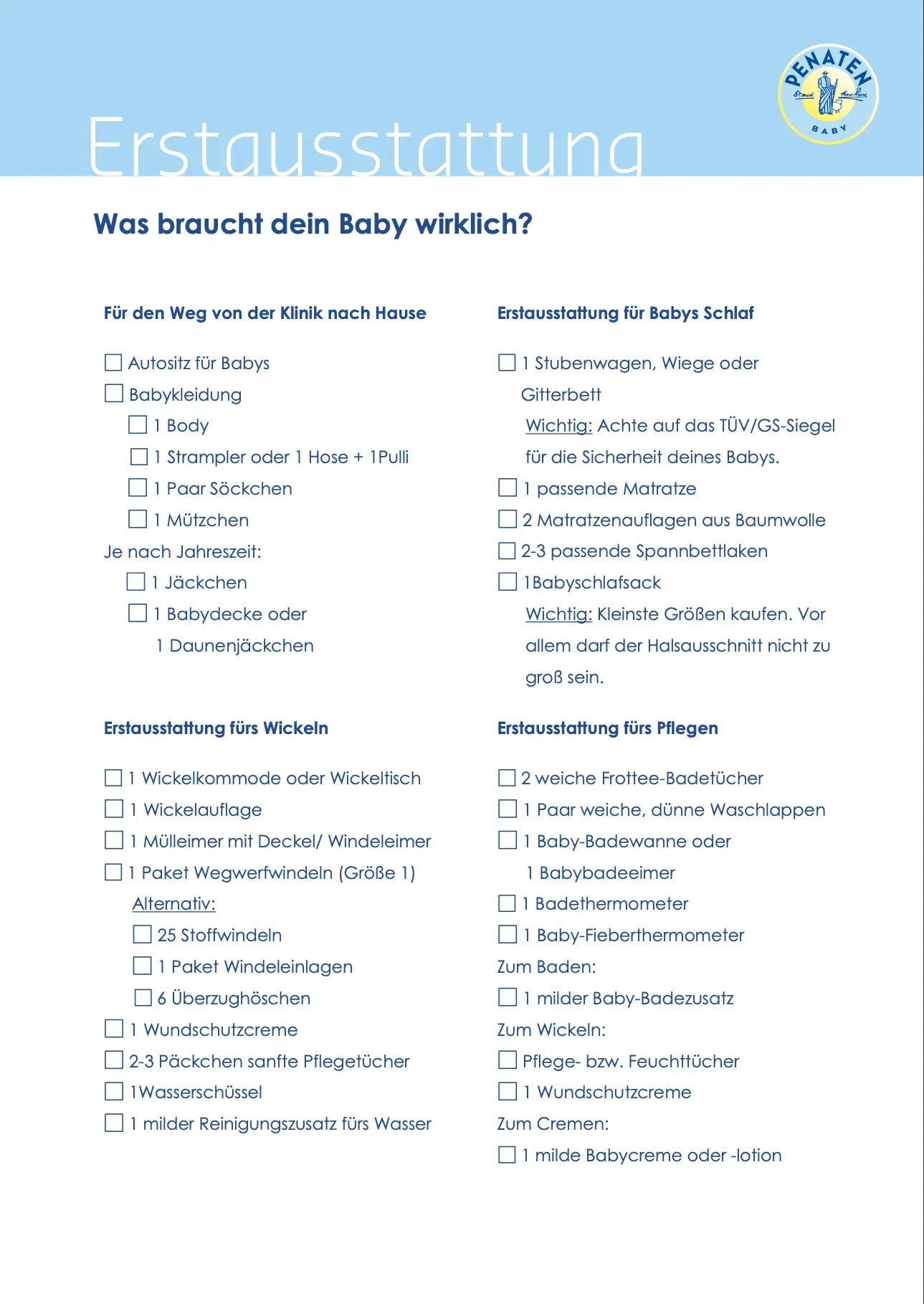BABYAUSSTATTUNG – LISTE