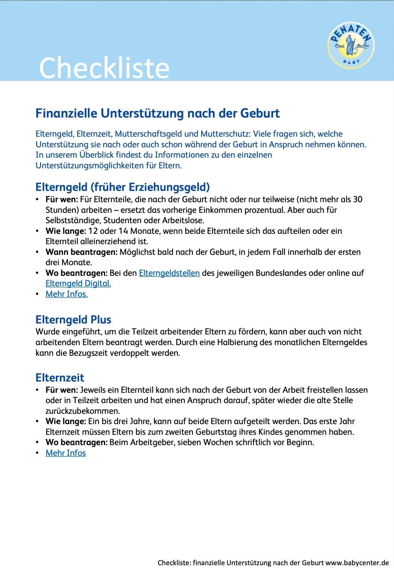 Elterngeld, Betreuungsgeld, Elternzeit, Mutterschaftsgeld und Mutterschutz: In unserer Liste findest du Informationen zu den einzelnen Unterstützungsmöglichkeiten für Eltern.